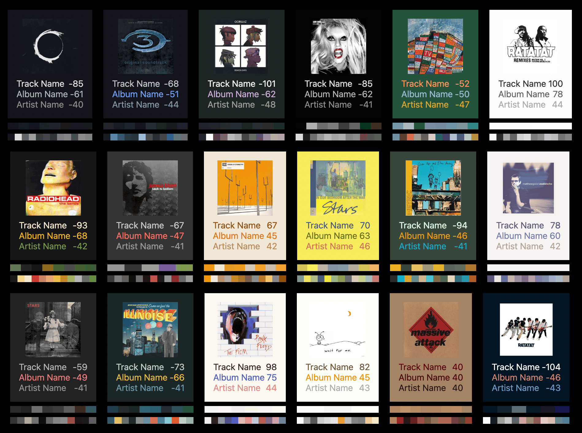 I also spent a silly amount of time writing an algorithm that extracts a palette of colours from album art - like iTunes did (does?) - and apply that palette to the entire app interface: