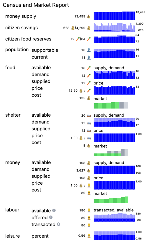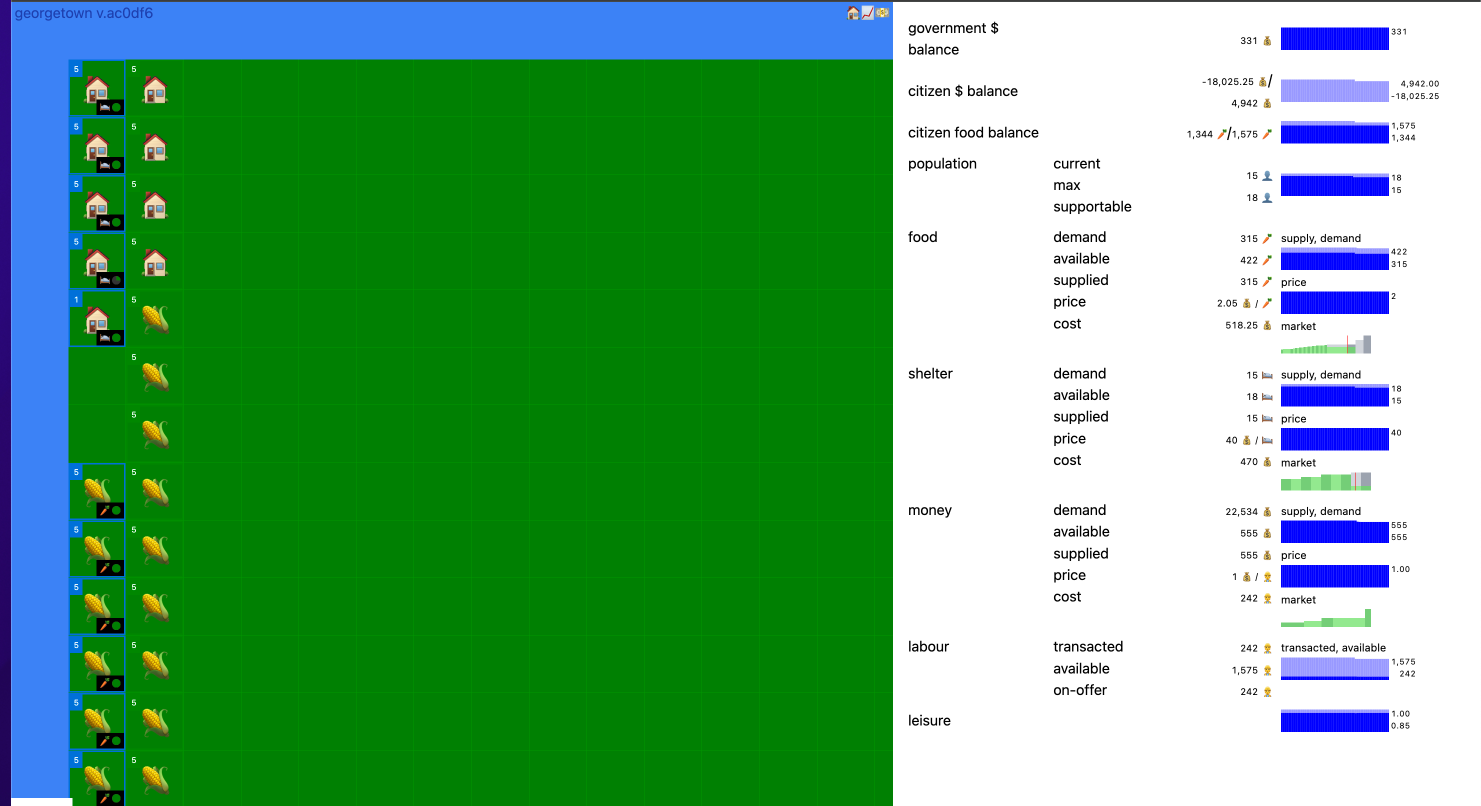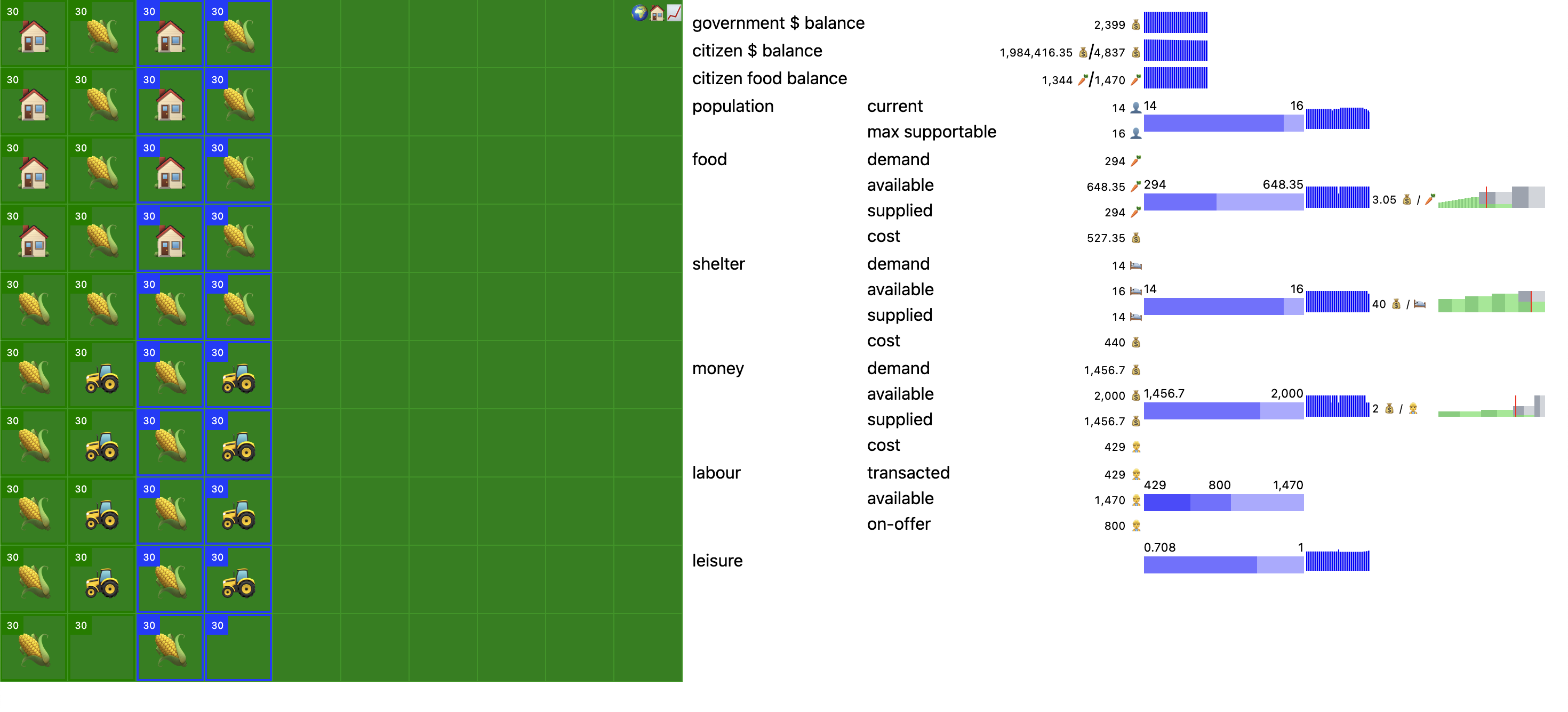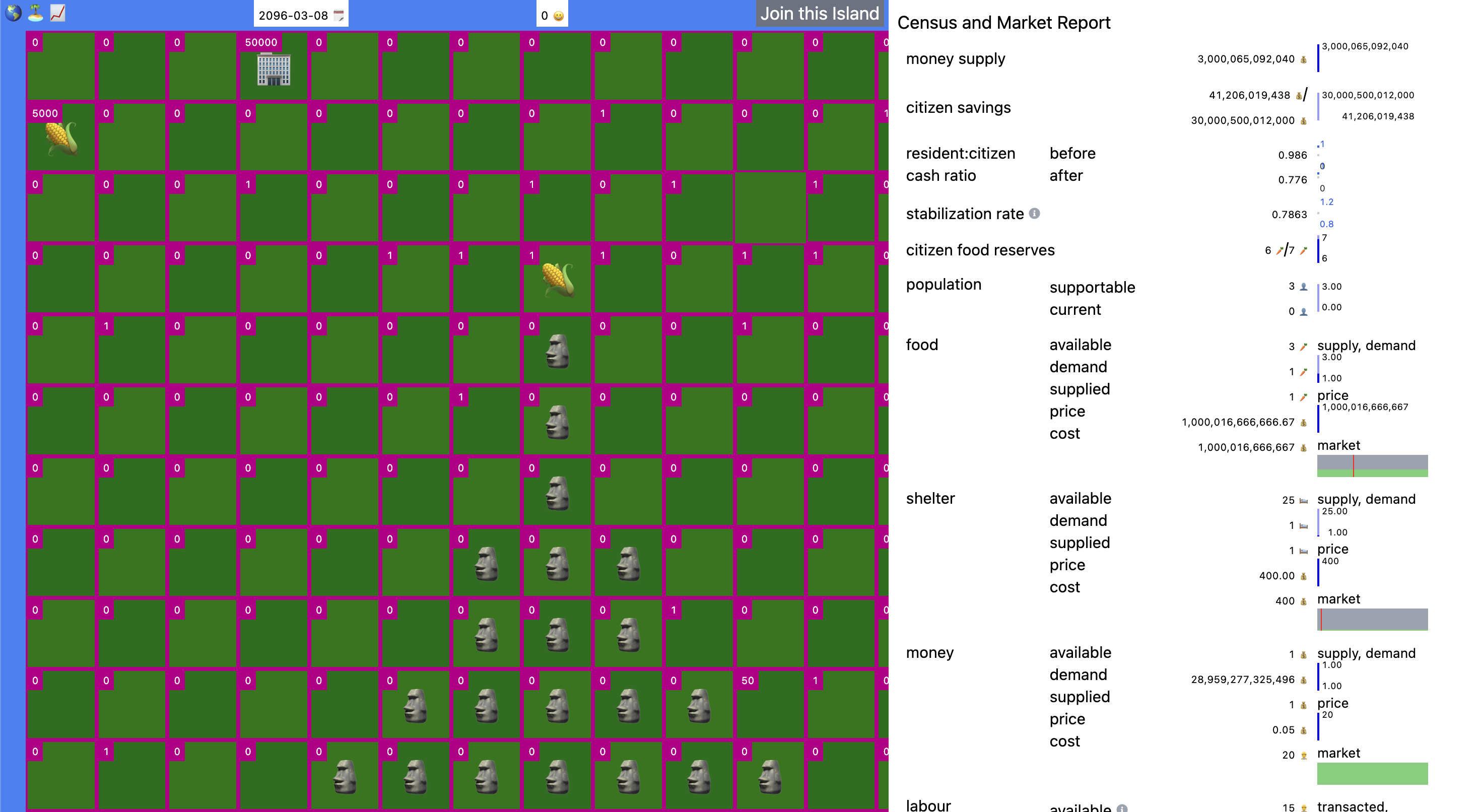 My primary motivation is to see how different economic policies (ex. land value taxes, universal basic income, or demurrage) affect player motivations and game play.