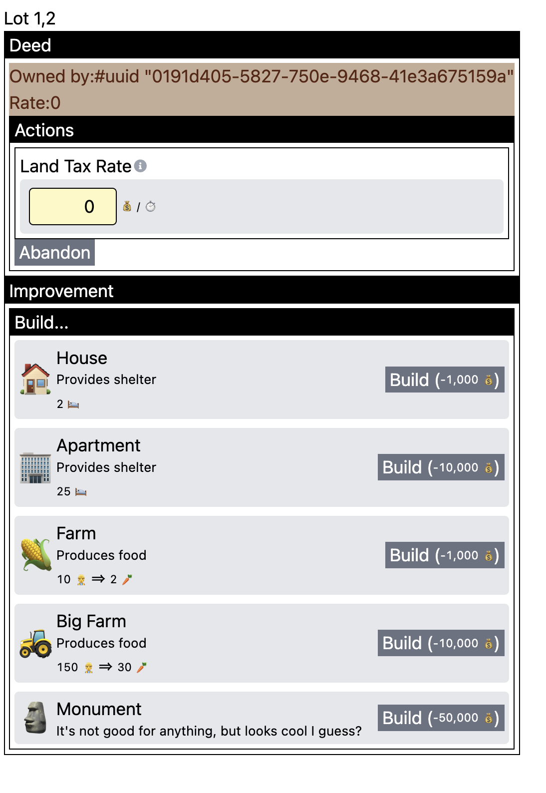 Then, in early August 2024, someone on /r/georgism announced a Georgist-themed game jam, and well... it felt like the stars had aligned. I had to participate.