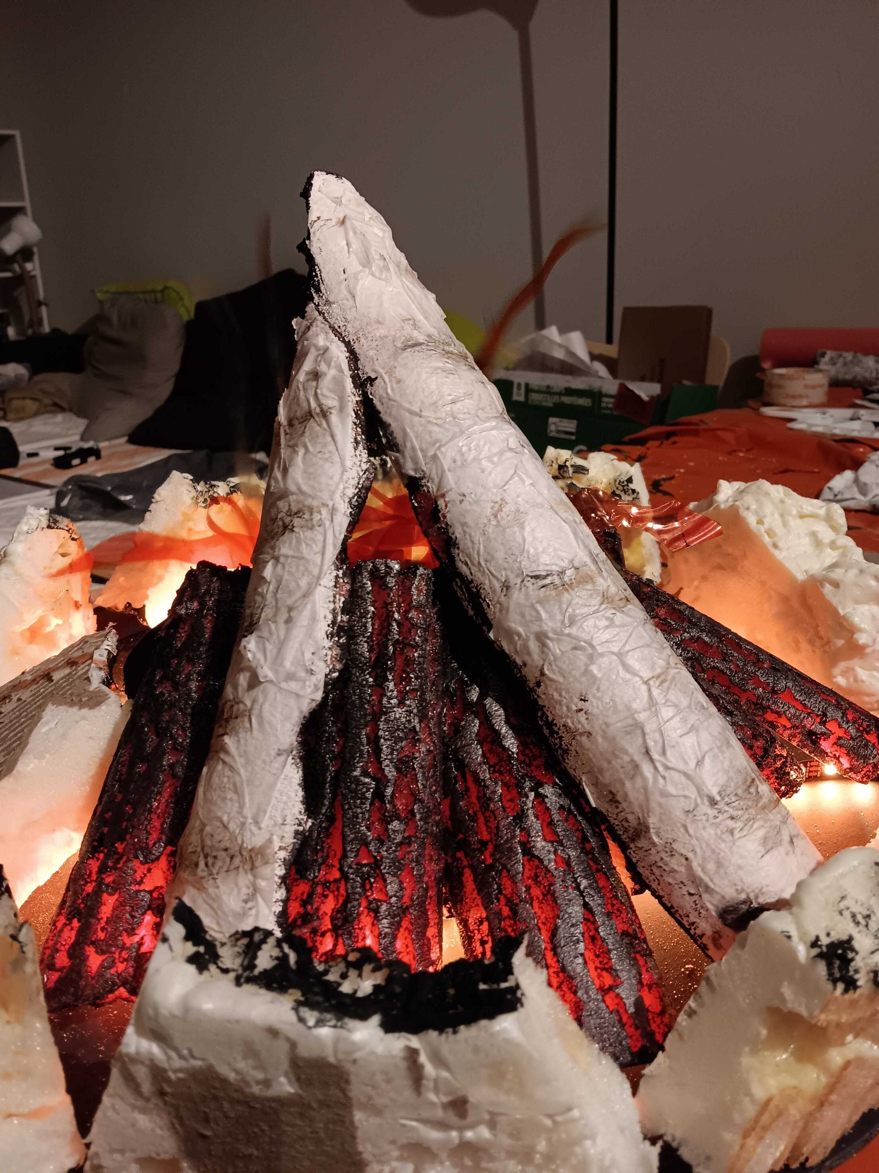 At our previous conj, Epidiah - who's run his fair share of conference booths - suggested we try a little harder for 2025, and make our booth into a "campsite." While trying to find a fake campfire to buy, I chose to try and make it instead.