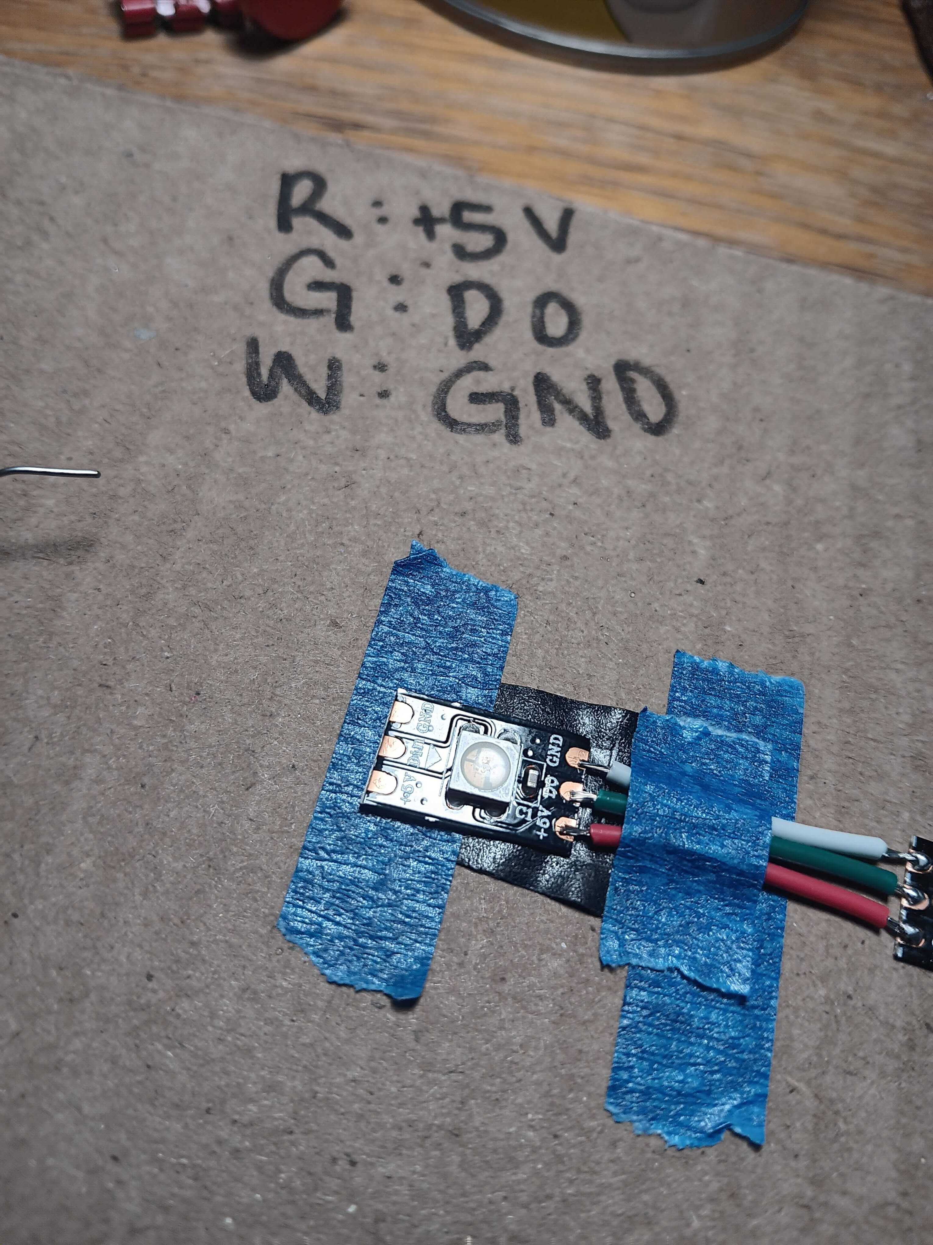 The strip of 60 LEDs was cut (mostly into single LEDs), that were then positioned and rewired, with some connectors to make it possible to disassemble easily.
