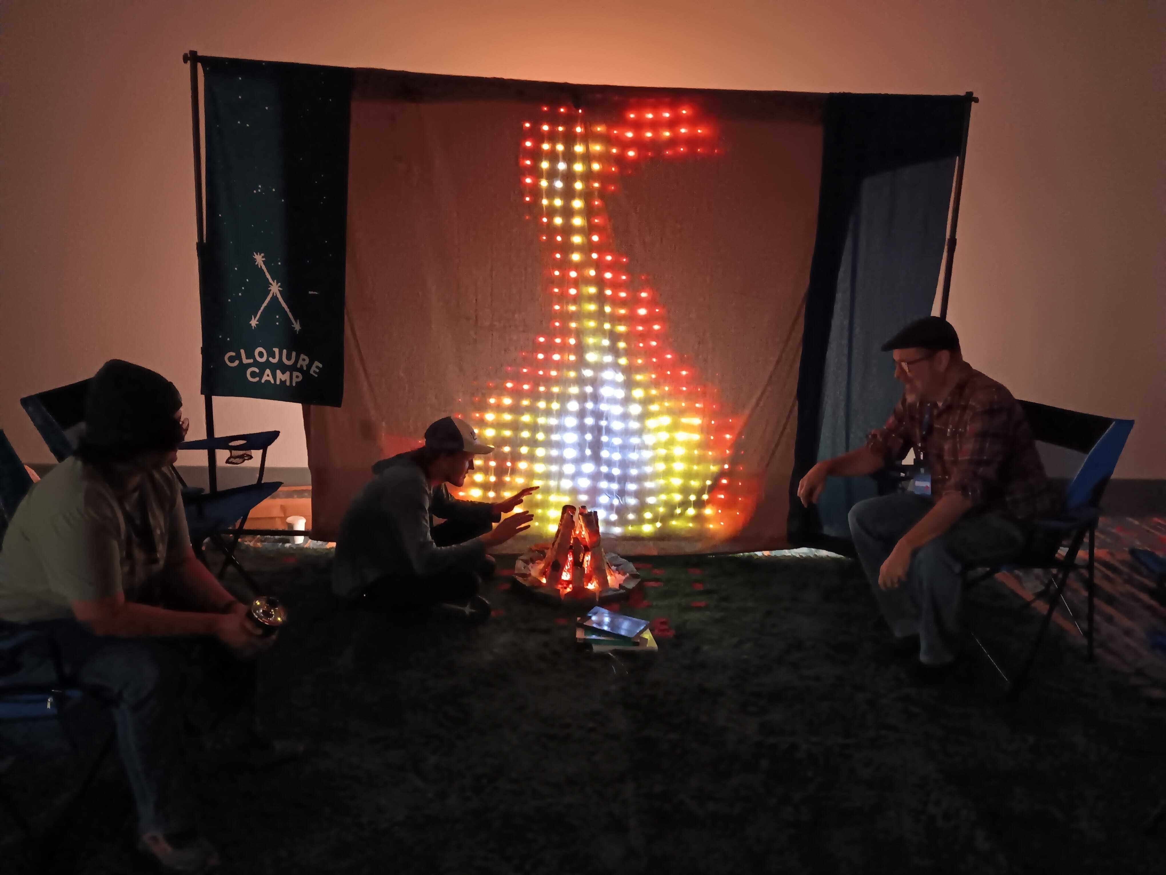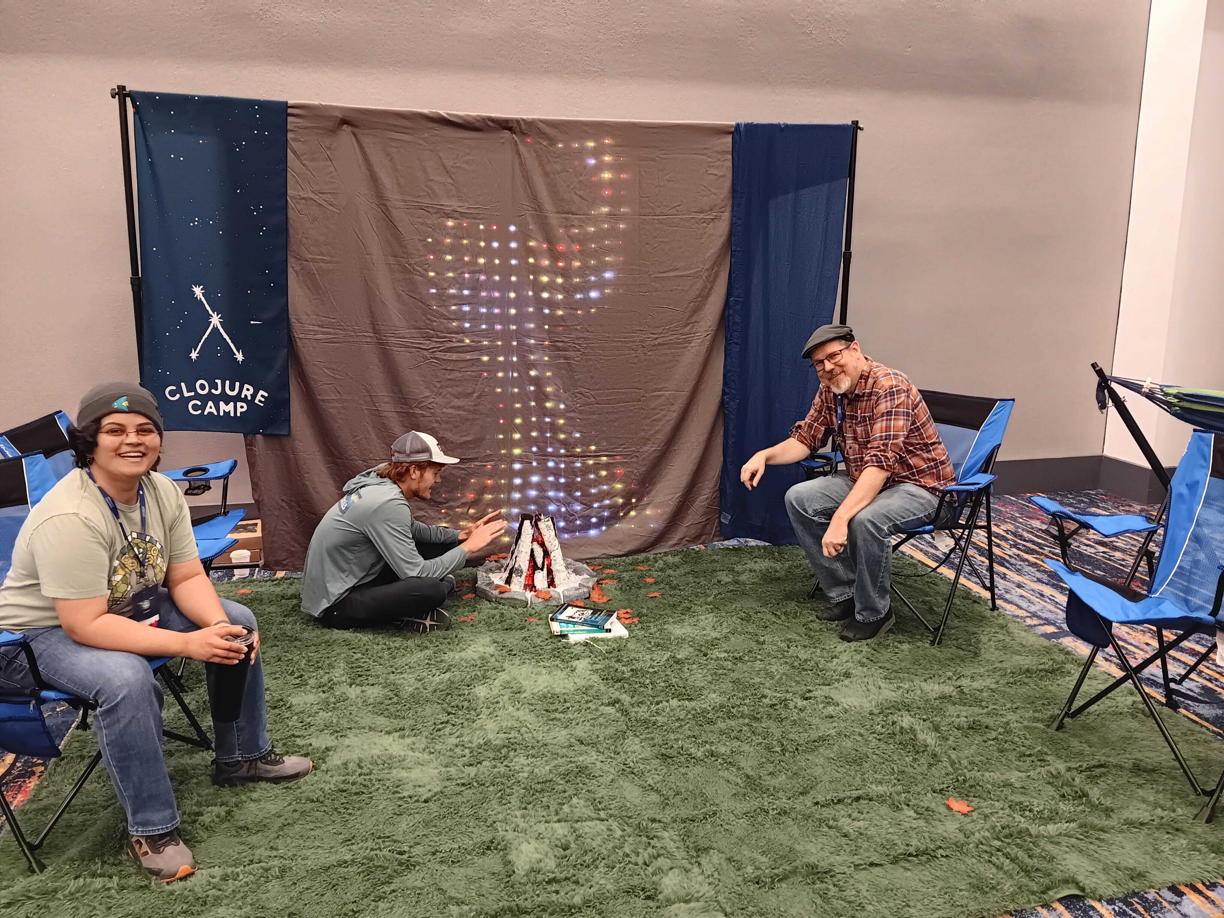 For the Clojure Camp booth at Conj 2025, I made a fake campfire to fit in with our camping theme.